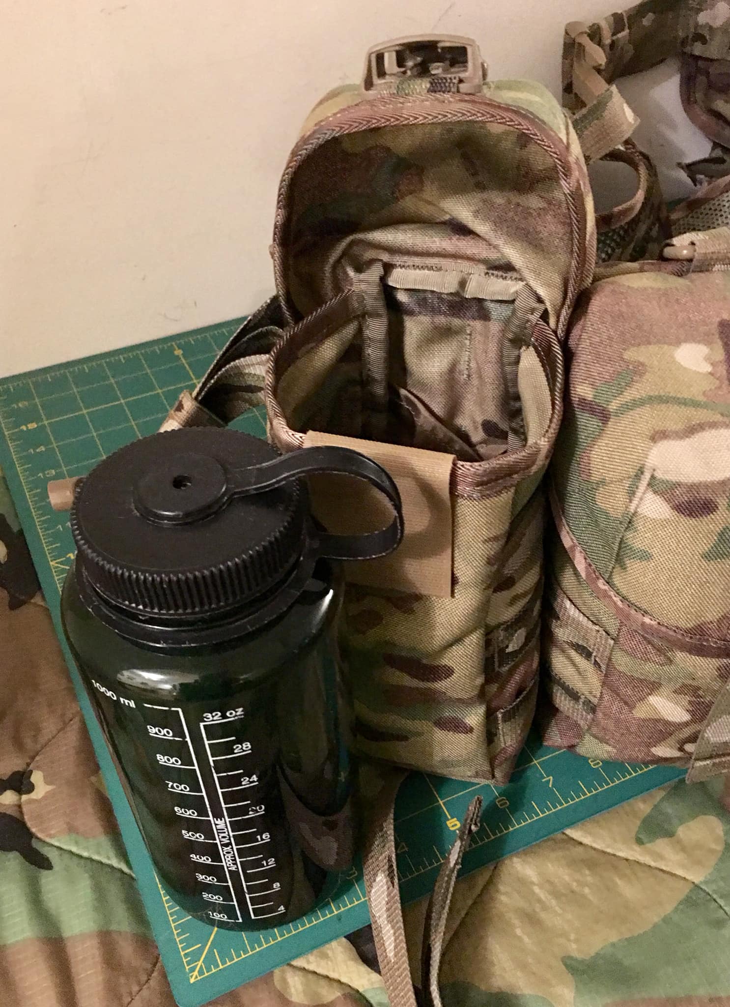 Running a 32oz Nalgene bottle in each of the 2 channel pockets: