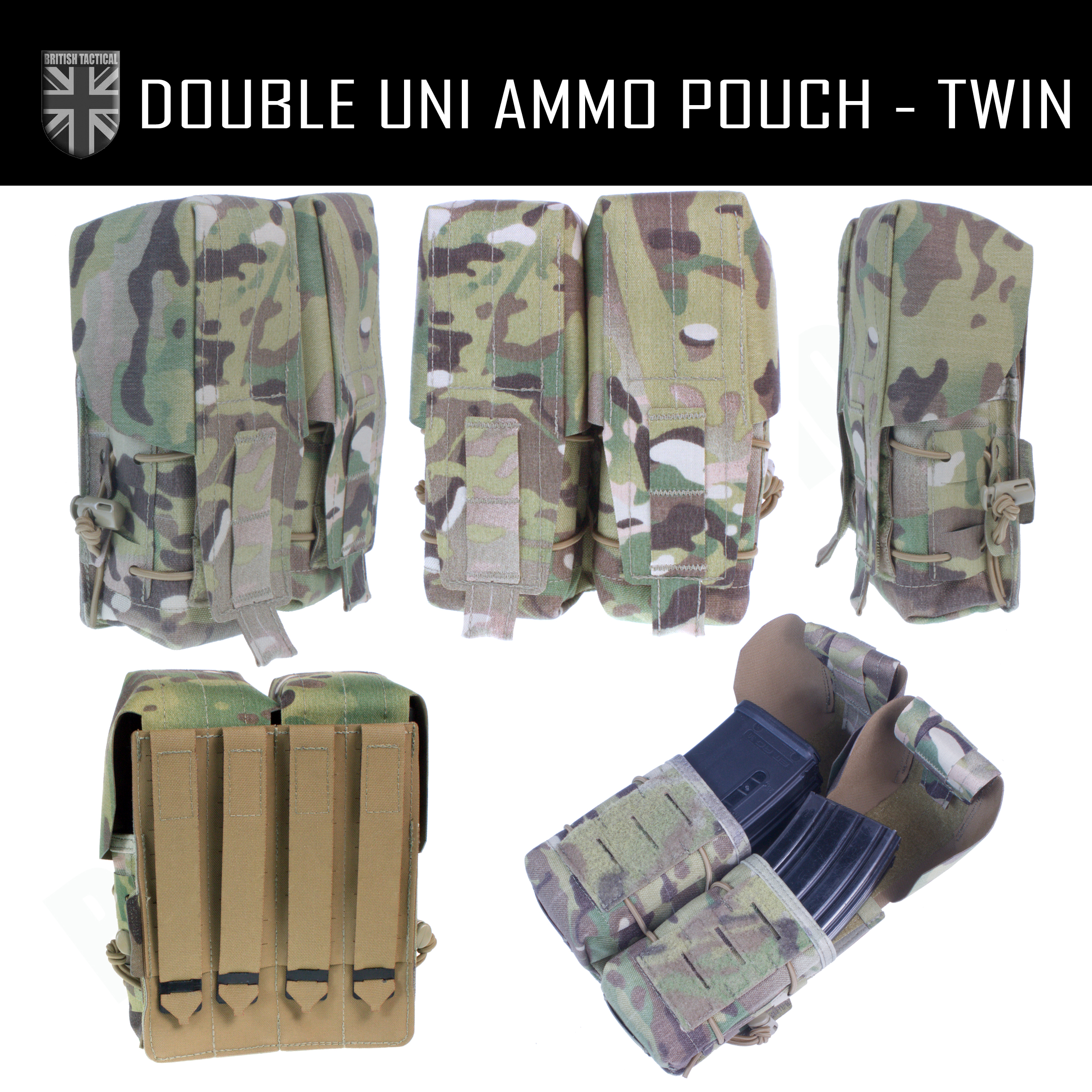 - Twin cell pouch option, 2 pouches side by side to hold total of 4 x 5.56mm Magazines.
