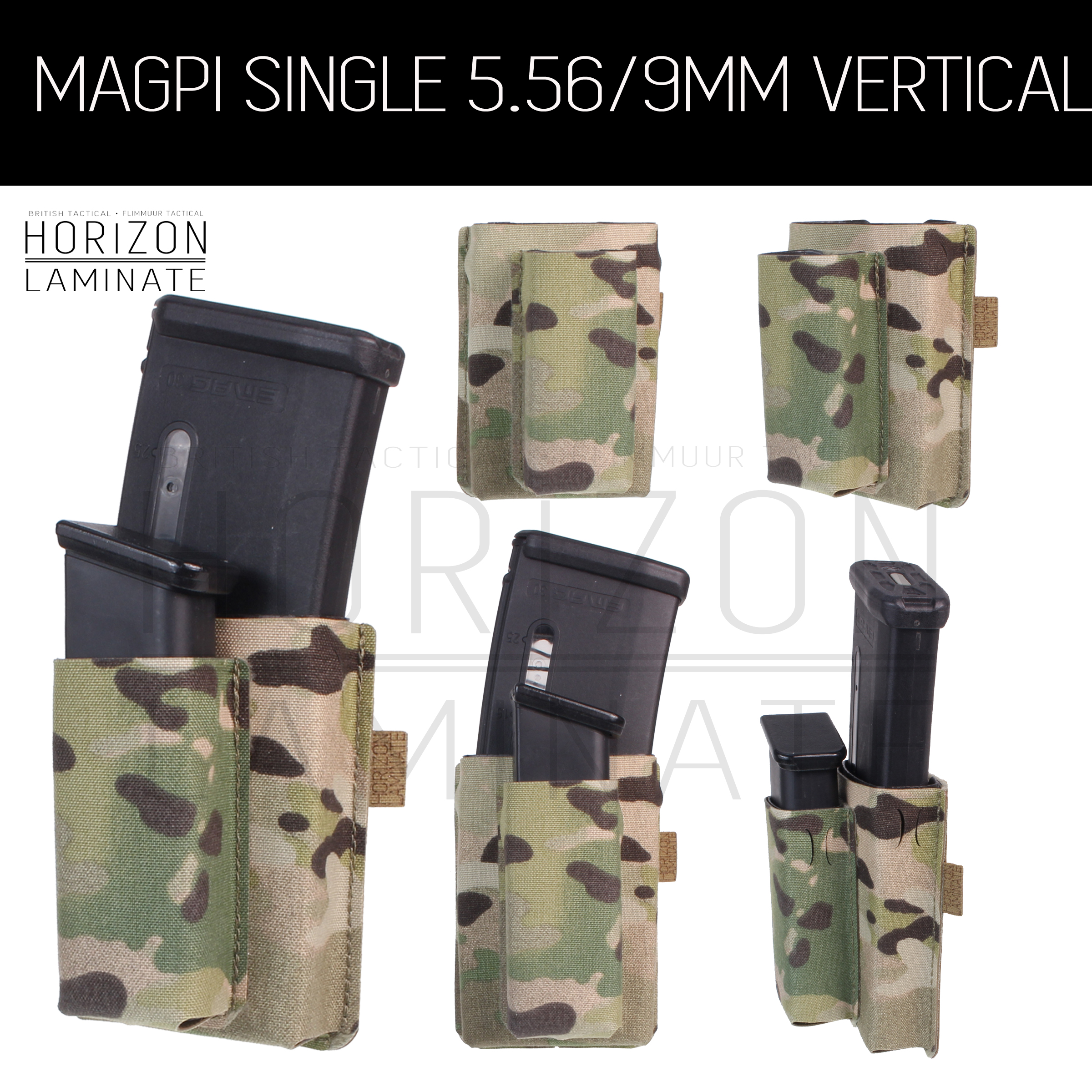 - This listing is for our Mid Single 5.56/9mm pouch, designed to securely hold one 5.56 magazine vertically and an additional single 9mm pouch.