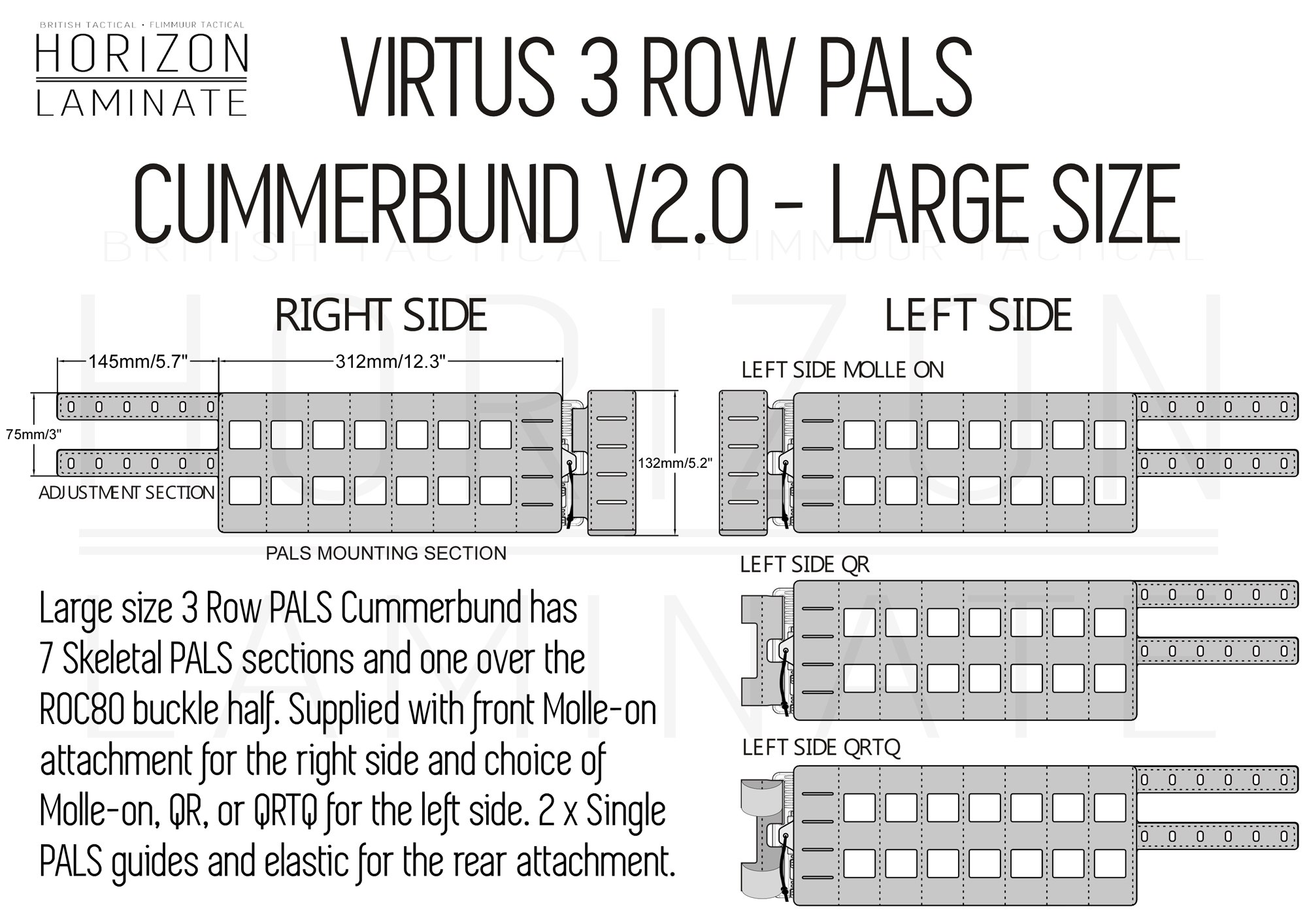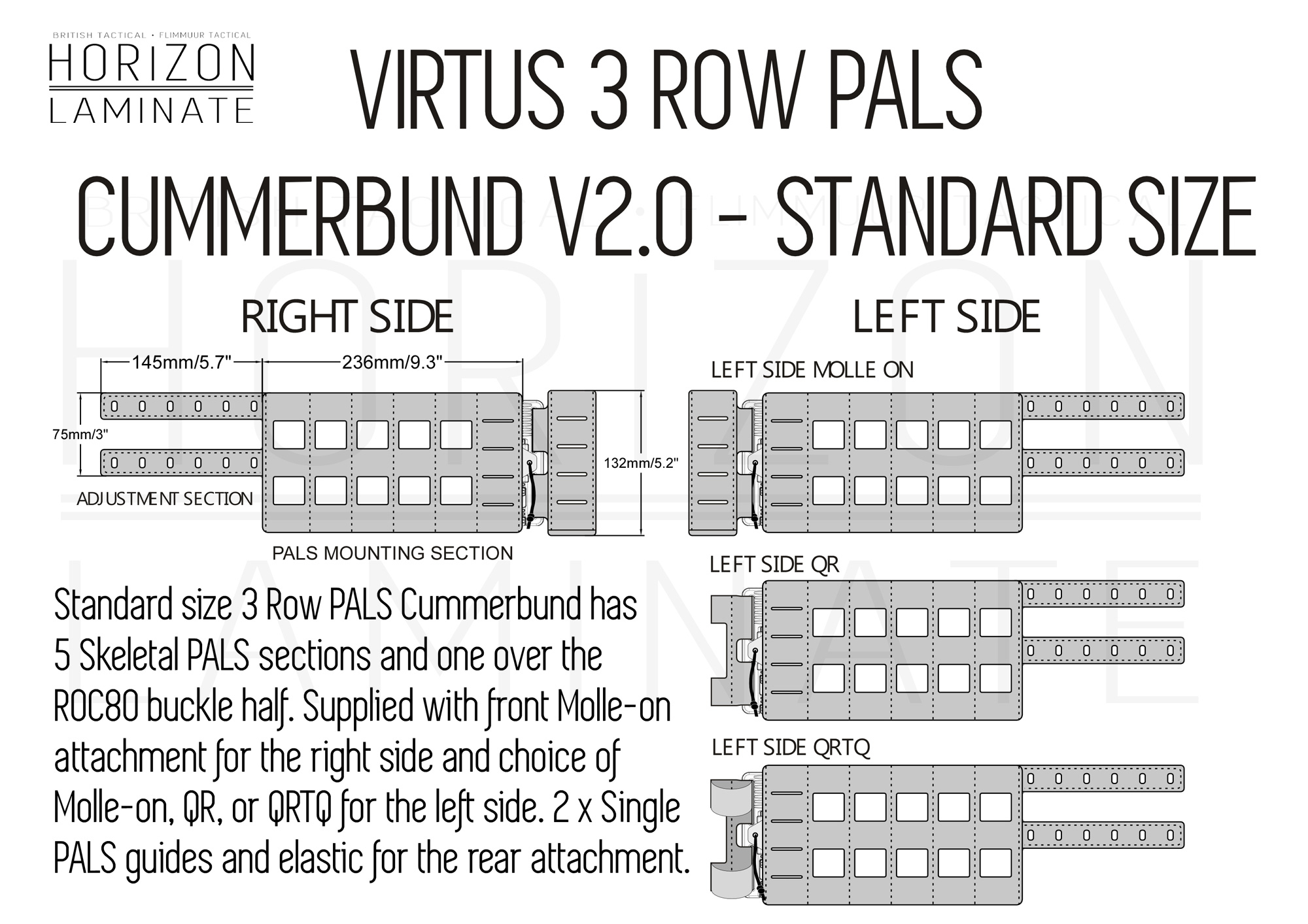 - Designed to attach at the rear of the VIRTUS Body Armour using custom produced Single PALS Column with elasticated cord to allow a snug fit, flexible movement of the panels and large range of adjustment.