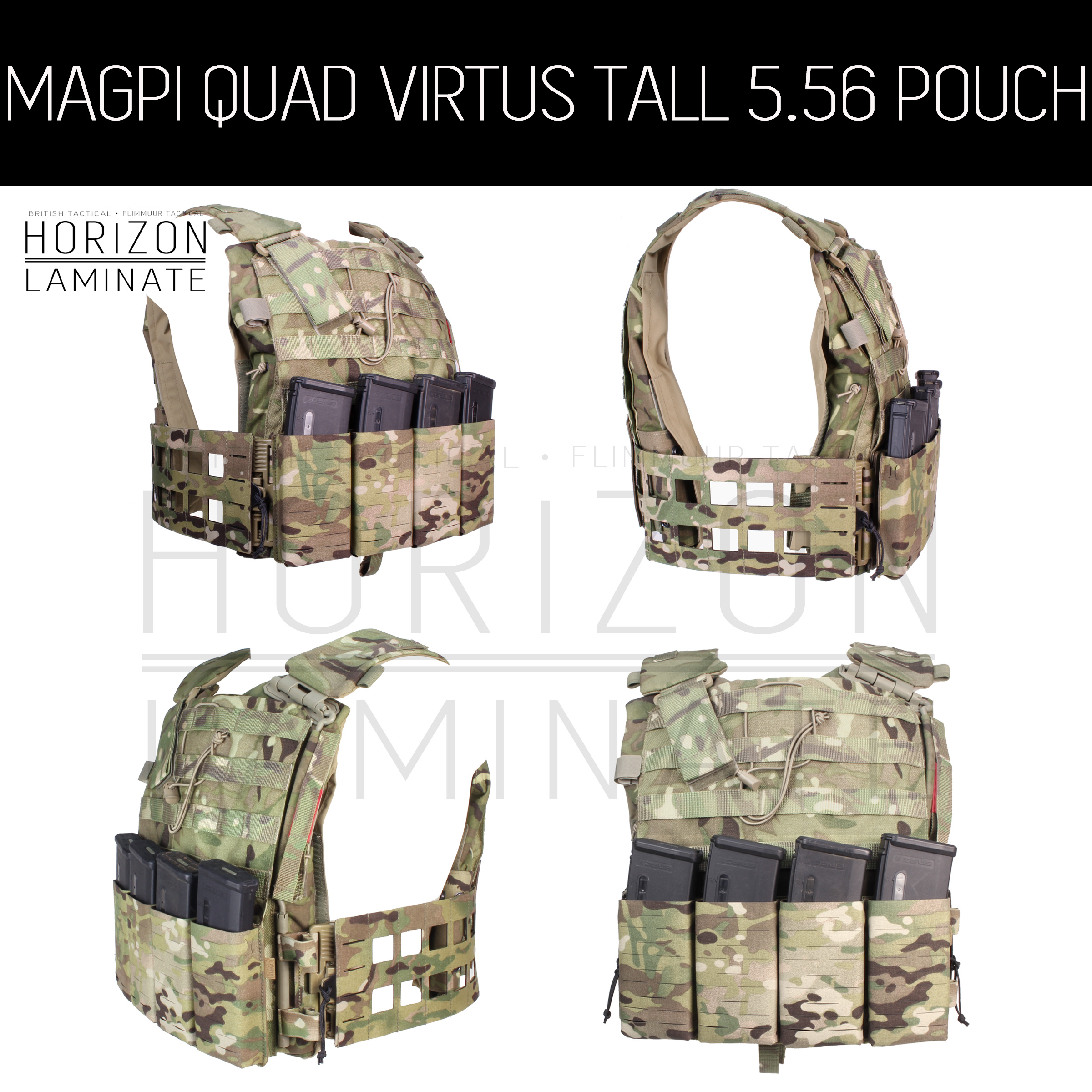 - This listing is for our VIRTUS Tall QUAD 5.56 pouch, designed to sit in the center of the VIRTUS Plate Carrier and securely hold four x 5.56 magazine.