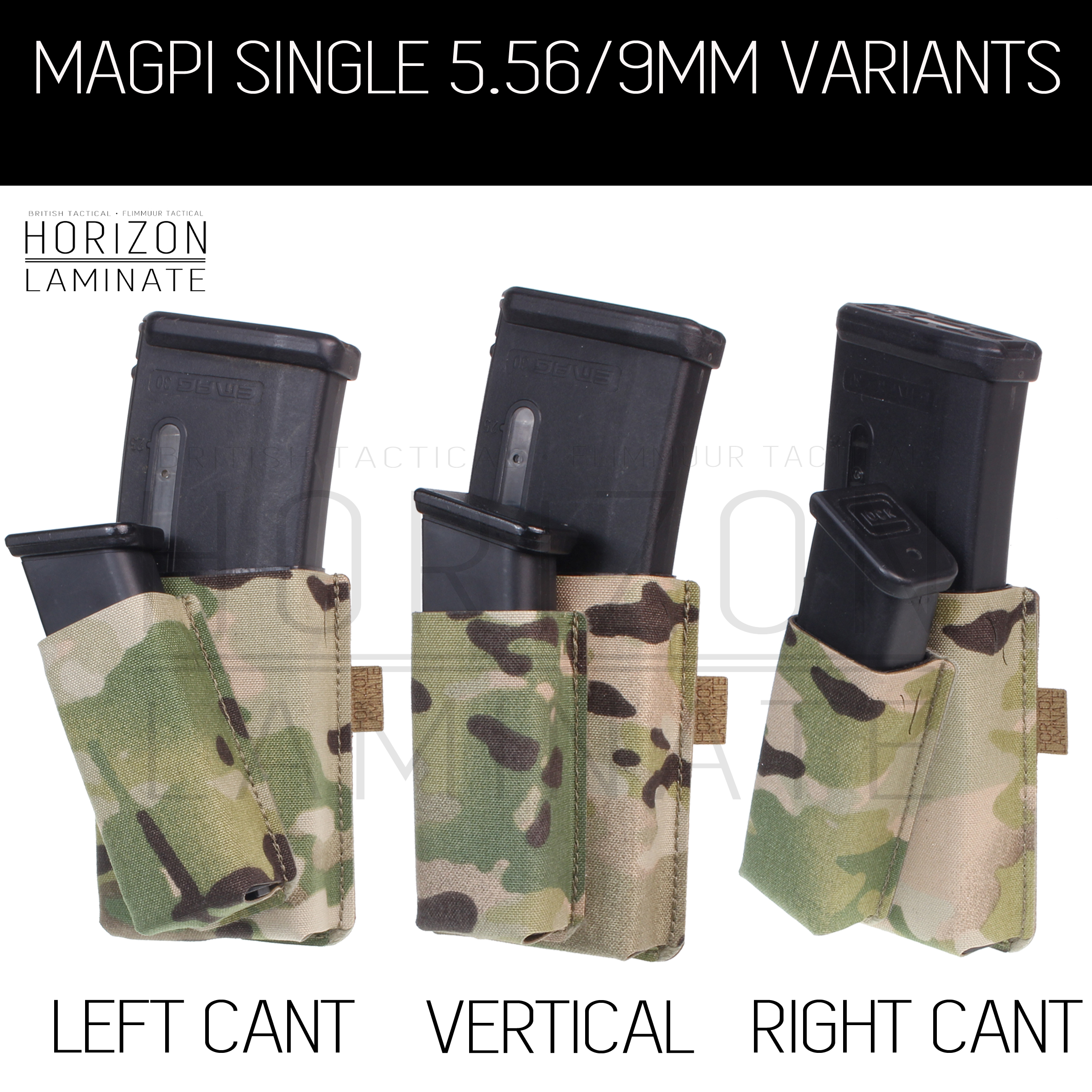 - 3 options for the angle of the front 9mm pouch, left, right cant or straight. Select from drop down. Cant direction is looking at the front so will be reversed when mounted.