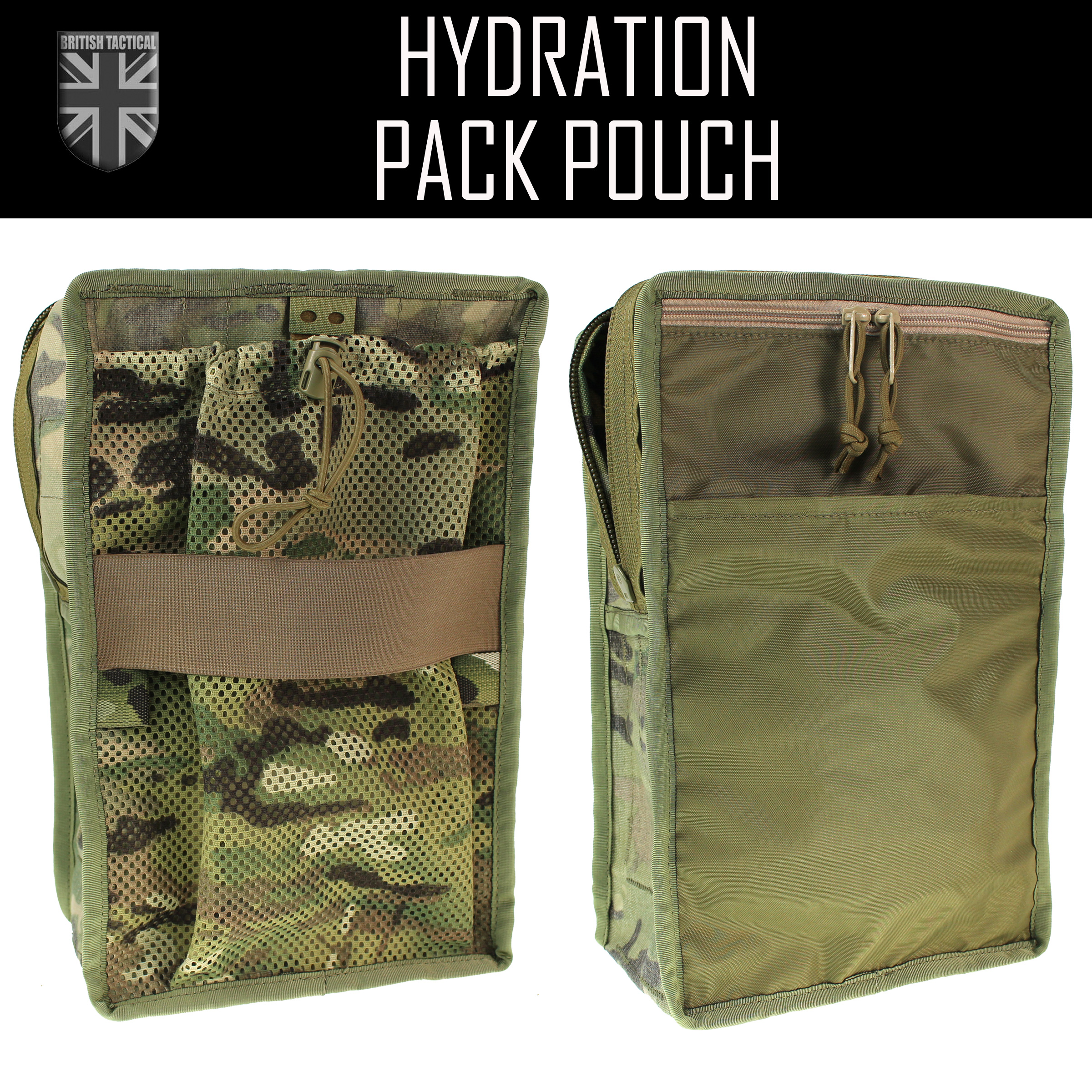 I ordered this pouch from Brittac LTD and received it quickly. There was a small problem with the molle as there was no Velcro as featured in the picture of the pouch, however, David and his team sorted that little matter out for me in less than 4 days. You don't often get service like that these days. What a refreshing change. The pouch itself is fantastic. I am using a 1.5L bladder in it but I am sure that it can also accommodate larger bladders too. There is also a nice little pocket for other items to be stowed inside the pouch too. There is enough molle to hang anything you want on this. A good solid bit of kit and a great company to boot. Buy one now. Tim W